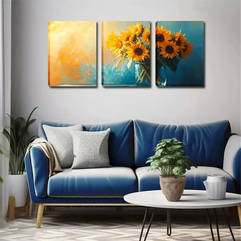 3pcs Sunflowers in Glass Vases Wall Art Set Canvas Framed 40x60cm - High Quality Print 100% Australian Made Wall Canvas Ready to Hang