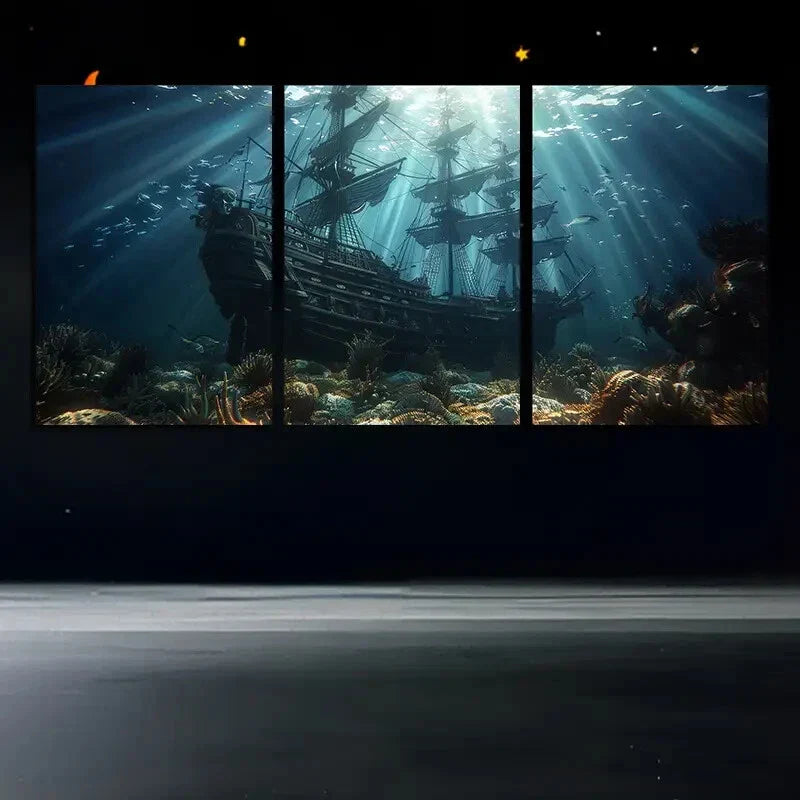 3pcs Sunken Pirate Ship Underwater Shipwreck Metal Print Ready to Hang Art