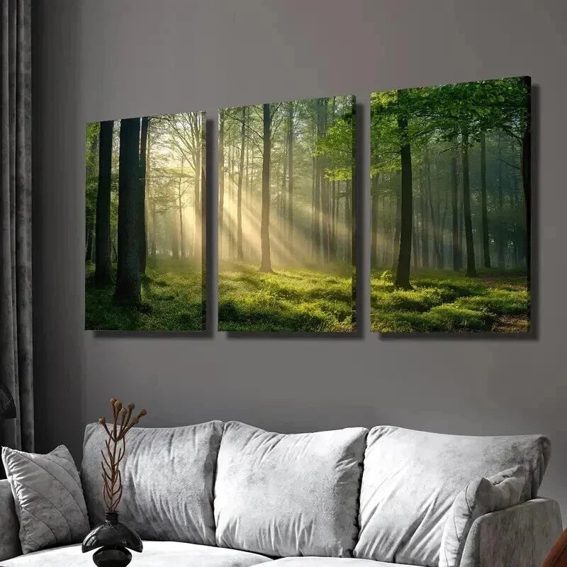 3pcs Sunlight Shining Through Green Forest Wall Art Set Canvas Framed 40x60cm - High Quality Print 100% Australian Made Wall Canvas Ready to Hang