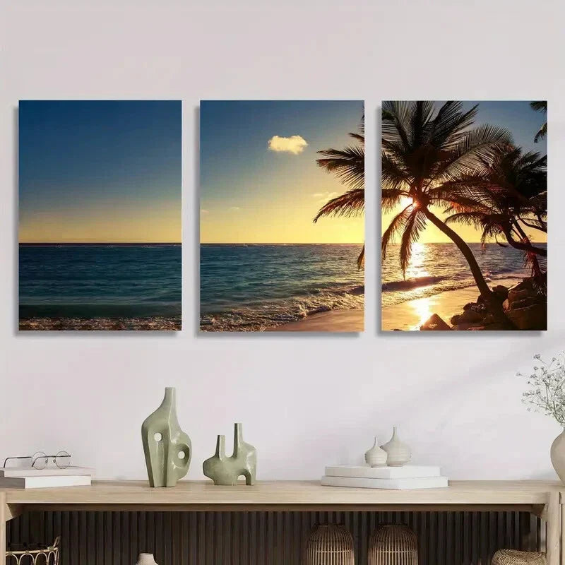 3pcs Sunrise And Sunset at Sea, Coco Island Metal Print Ready to Hang Art
