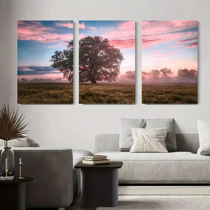 3pcs Sunrise Tree Misty Field Nature Morning Sky Metal Print Ready to Hang Art