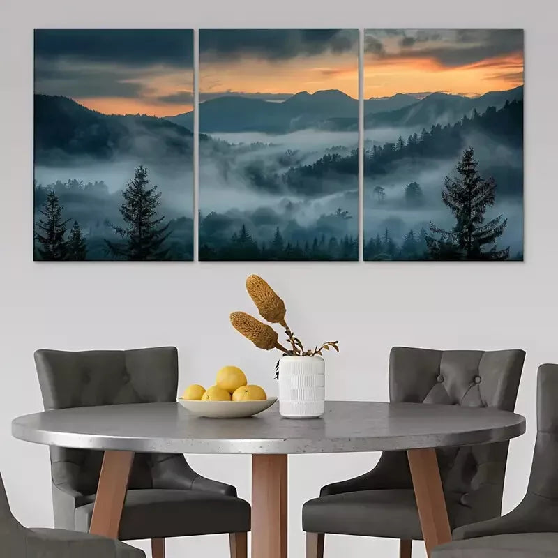 3pcs Sunset & Forest With Mountain Scenery Canvas Framed 40x60cm - High Quality Print 100% Australian Made Wall Canvas Ready to Hang
