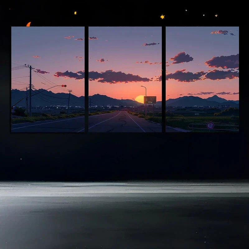 3pcs Sunset Highway Vibrant Clouds Metal Print Ready to Hang Art