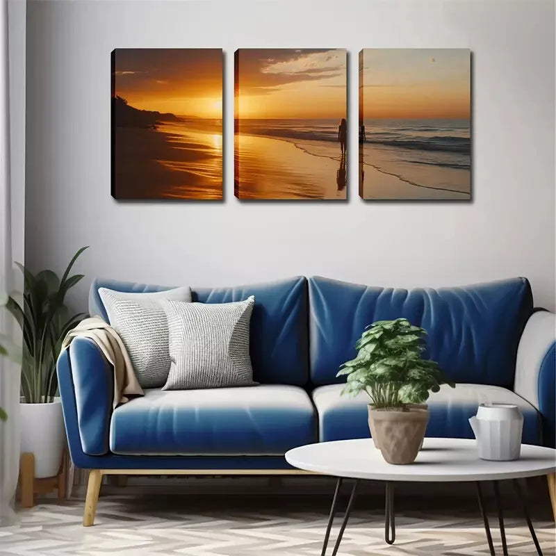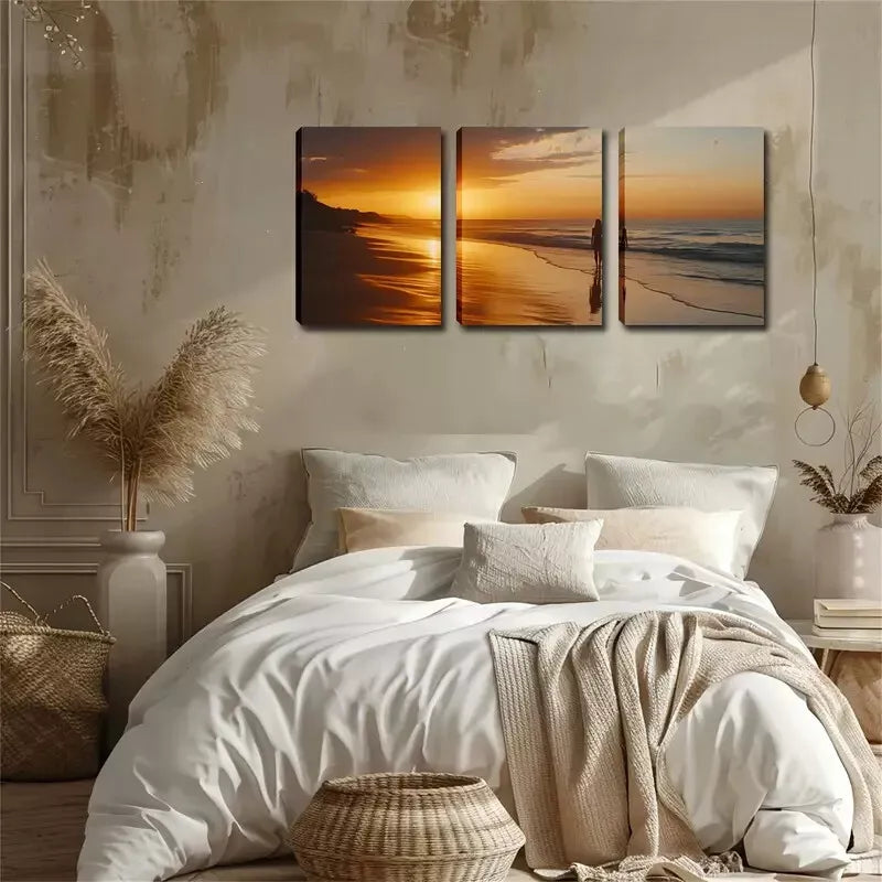 3pcs Beach, Autumn Leaves & Abstract Designs Wall Art Set Canvas Framed 40x60cm - High Quality Print 100% Australian Made Wall Canvas Ready to Hang