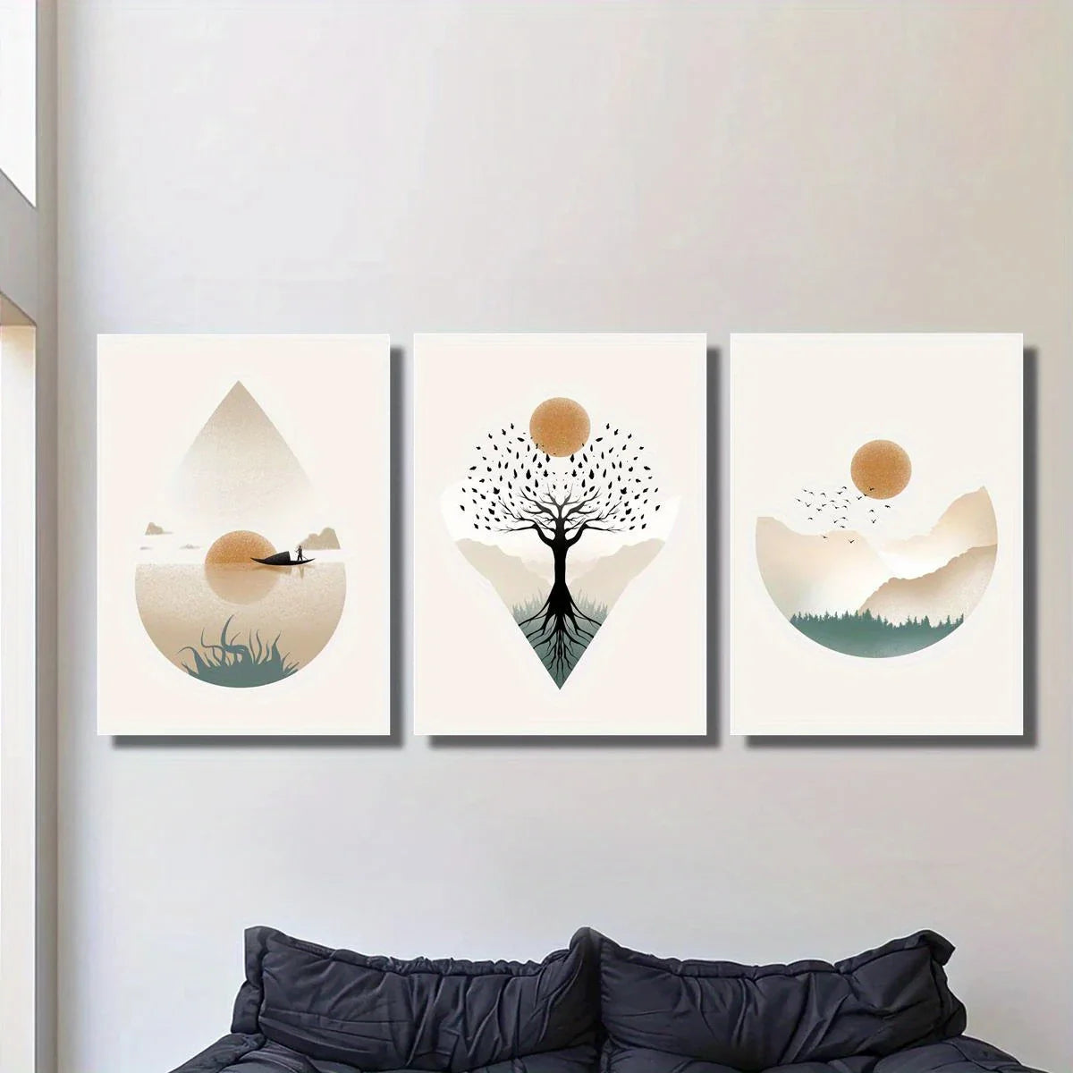 3pcs Sunset, Tree of Life, and Lake Scene with Boat Metal Print Ready to Hang Art