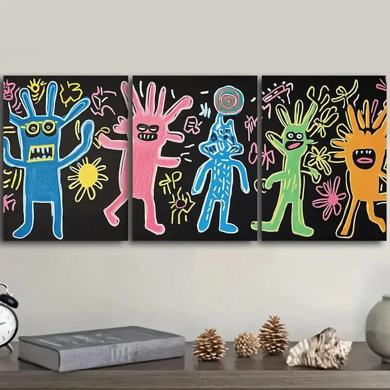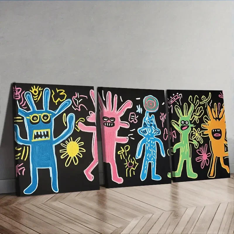 3pcs Surreal character graffiti Painting Wall Art Set Canvas Framed 40x60cm - High Quality Print 100% Australian Made Wall Canvas Ready to Hang
