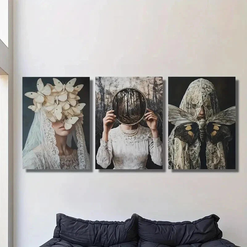 3pcs Surreal Illustration of Butterflies, Women, Metal Print Ready to Hang Art