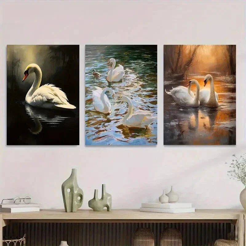3pcs Swan Lake Painting Classic Style Wall Art Set Canvas Framed 40x60cm - High Quality Print 100% Australian Made Wall Canvas Ready to Hang