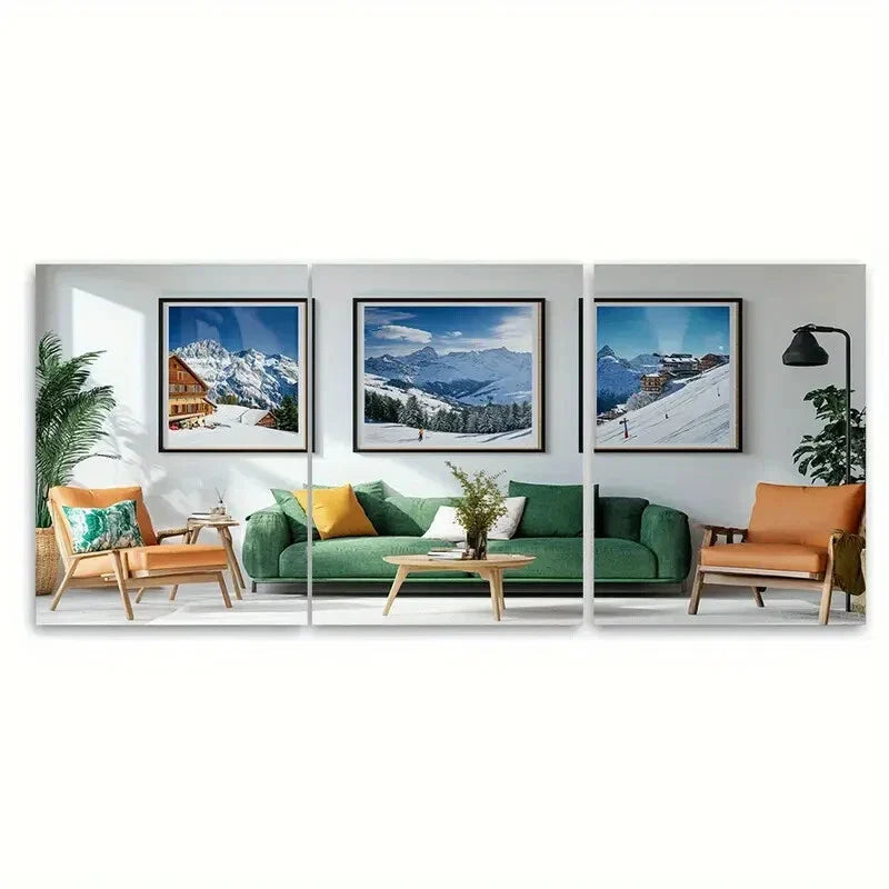 3pcs Swiss Alps Ski Scene &Serene Alpine Landscape Metal Print Ready to Hang Art