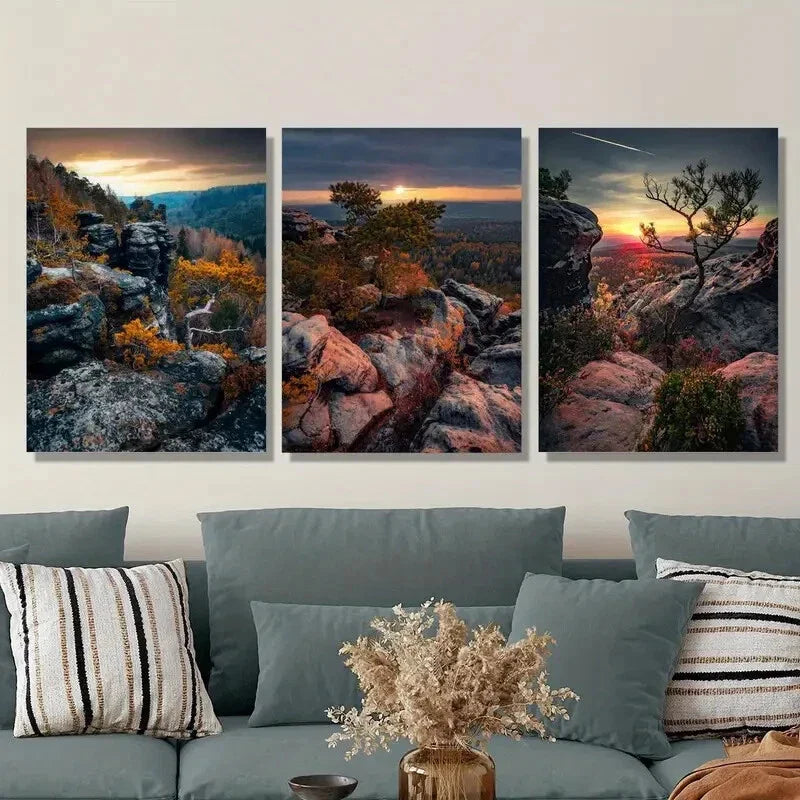 3pcs Switzerland, sunset in Saxon Switzerland Metal Print Ready to Hang Art