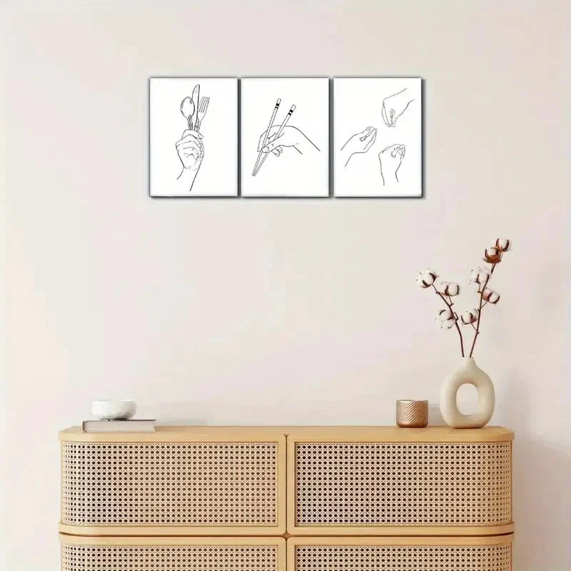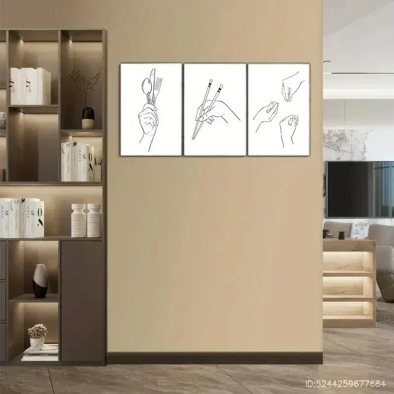 3pcs Tableware Chopsticks Knife Fork & Spoon Metal Print Ready to Hang Art