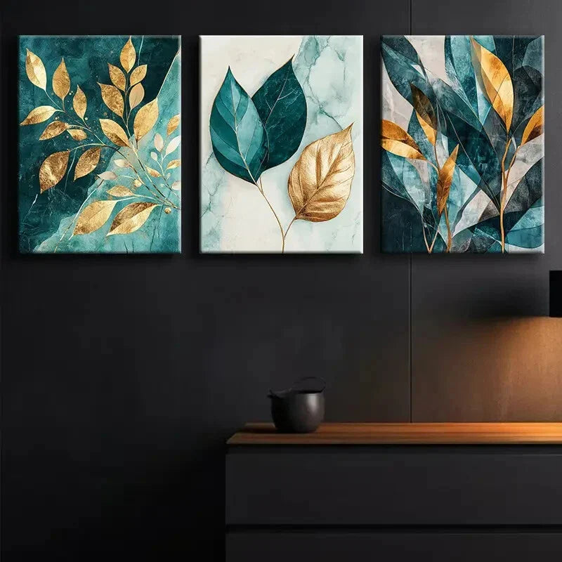 3pcs Teal and Gold Leaf Nature Beauty Perfect Wall Art Set Canvas Framed 40x60cm - High Quality Print 100% Australian Made Wall Canvas Ready to Hang