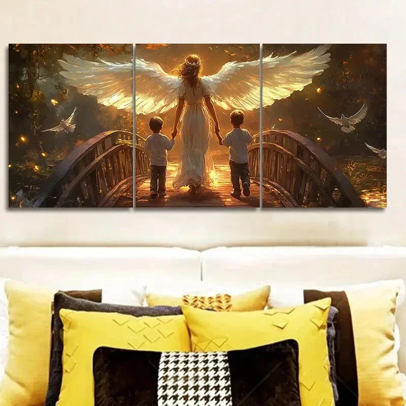 3pcs The angel and two little boys Wall Art Set Canvas Framed 40x60cm - High Quality Print 100% Australian Made Wall Canvas Ready to Hang