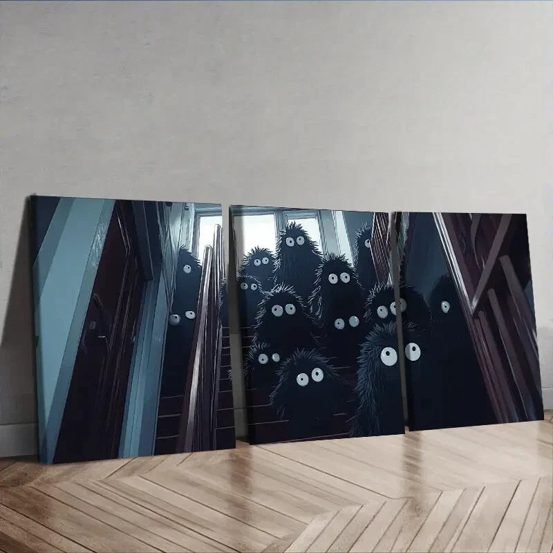 3pcs The black monster Wall Art Set Canvas Framed 40x60cm - High Quality Print 100% Australian Made Wall Canvas Ready to Hang