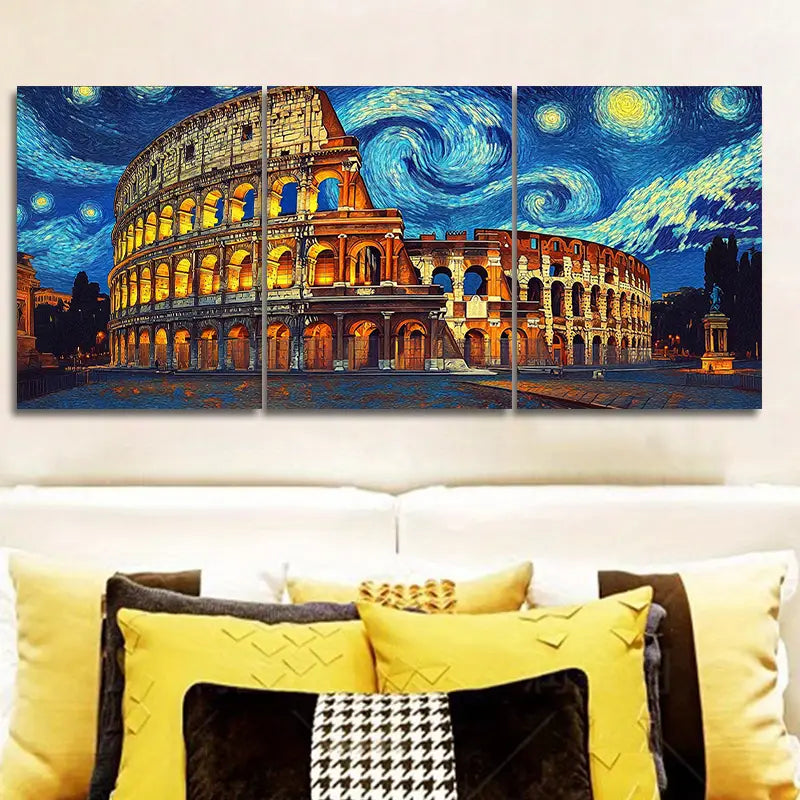 3pcs The Colosseum Night Sky Metal Print Ready to Hang Art