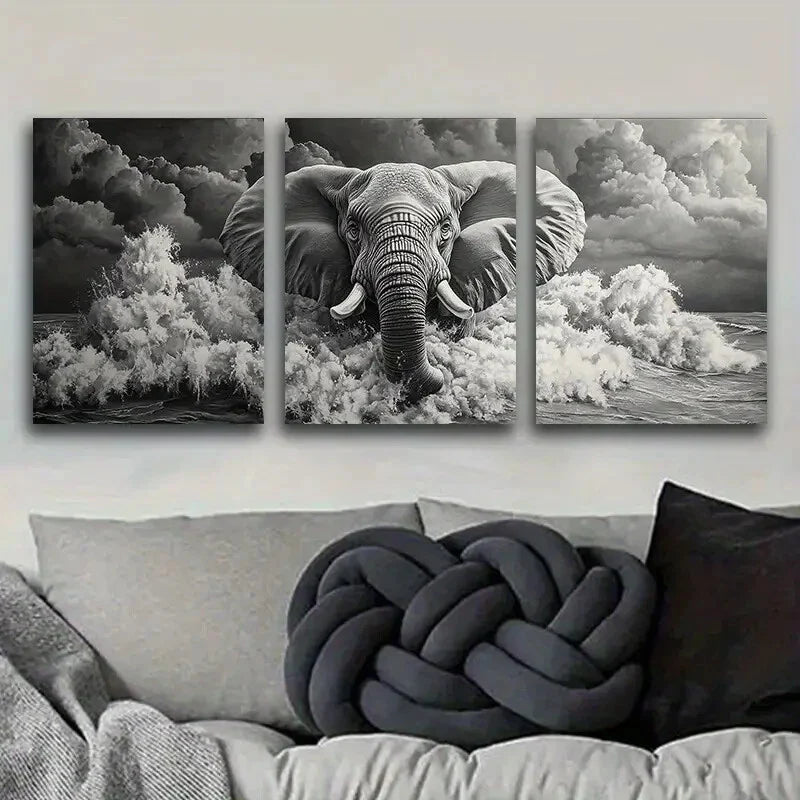 3pcs The elephant in the cloud Metal Print Ready to Hang Art