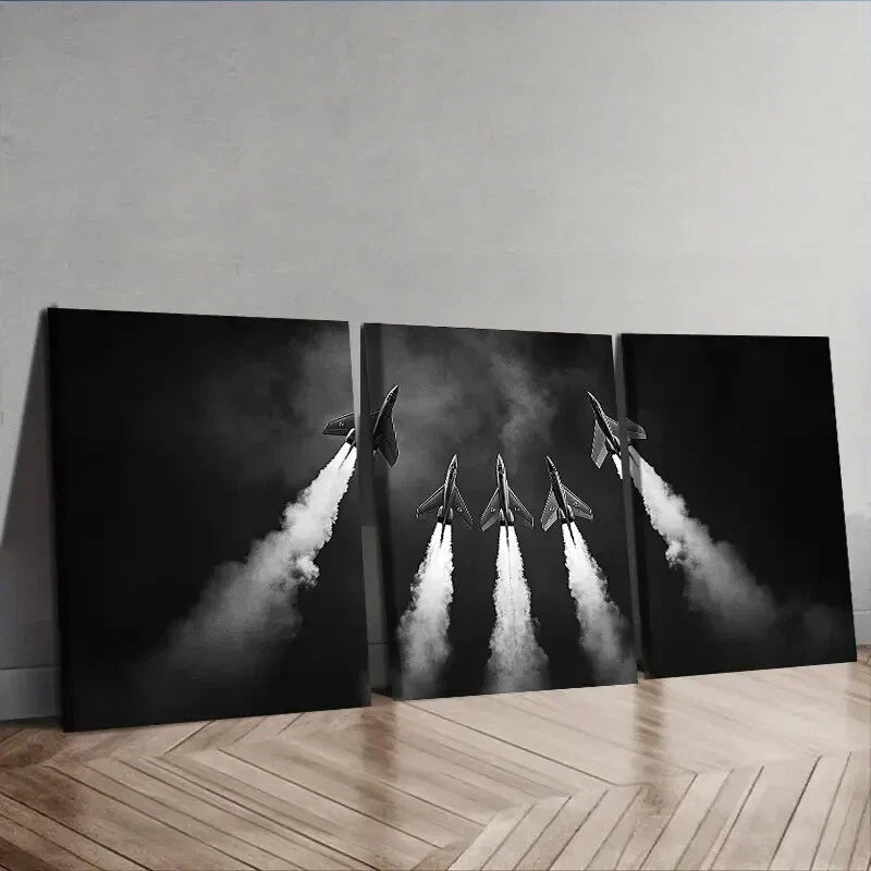 3pcs The jet plane is in the sky Wall Art Set Canvas Framed 40x60cm - High Quality Print 100% Australian Made Wall Canvas Ready to Hang