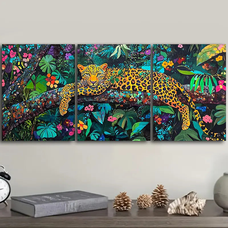 3pcs The Leopard on the Branch Metal Print Ready to Hang Art
