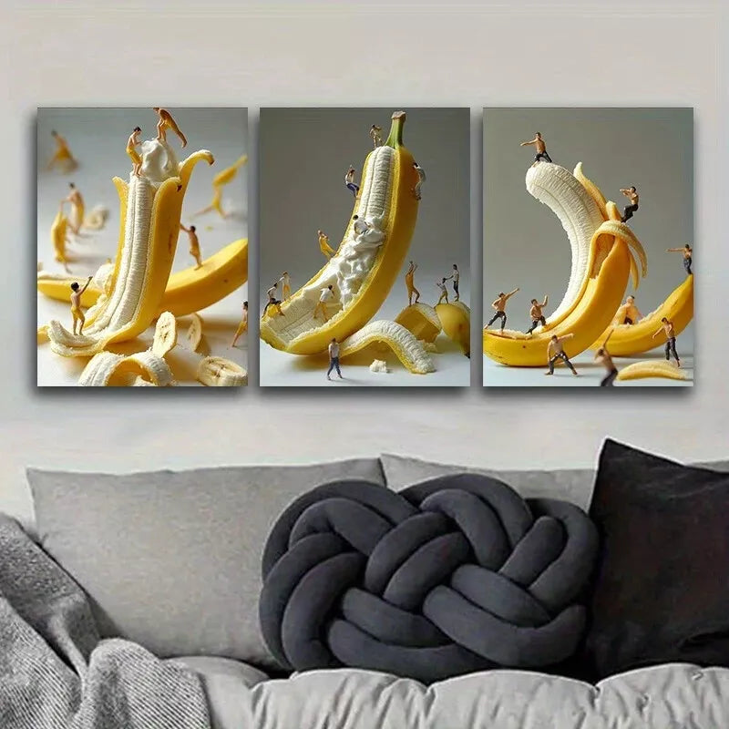 3pcs The Little Man Climbed On The Banana Wall Art Set Canvas Framed 40x60cm - High Quality Print 100% Australian Made Wall Canvas Ready to Hang