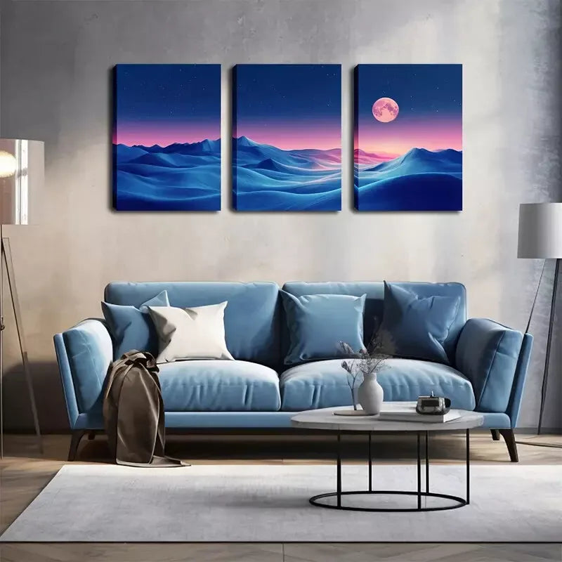 3pcs The Moon On Land Wall Art Set Canvas Framed 40x60cm - High Quality Print 100% Australian Made Wall Canvas Ready to Hang