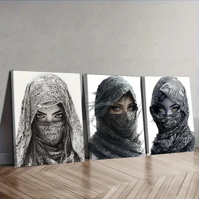 3pcs The mysterious cloaked woman of Egypt Wall Art Set Canvas Framed 40x60cm - High Quality Print 100% Australian Made Wall Canvas Ready to Hang