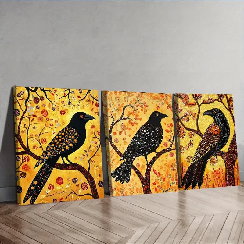 3pcs The psychic crow Animal Wall Art Set Canvas Framed 40x60cm - High Quality Print 100% Australian Made Wall Canvas Ready to Hang