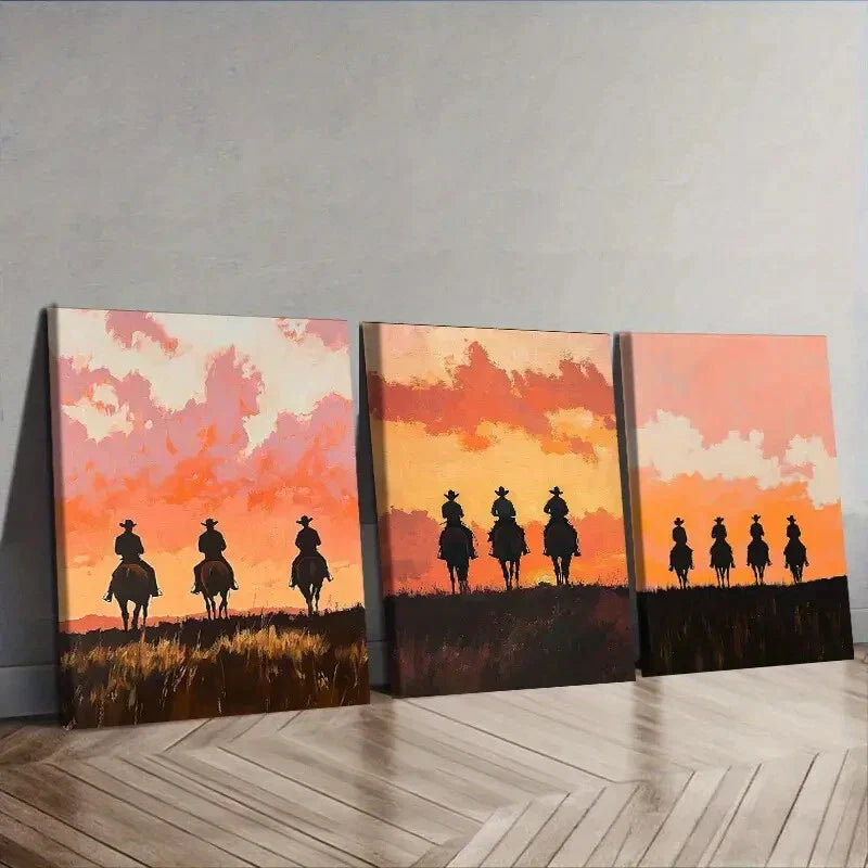 3pcs Three Free cowboys Painting Wall Art Set Canvas Framed 40x60cm - High Quality Print 100% Australian Made Wall Canvas Ready to Hang