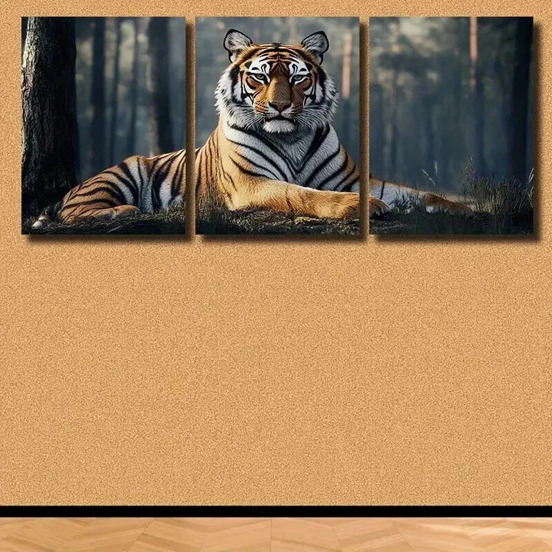 3pcs Tiger in Ancient Forest Mural Decor Wall Art Set Canvas Framed 40x60cm - High Quality Print 100% Australian Made Wall Canvas Ready to Hang