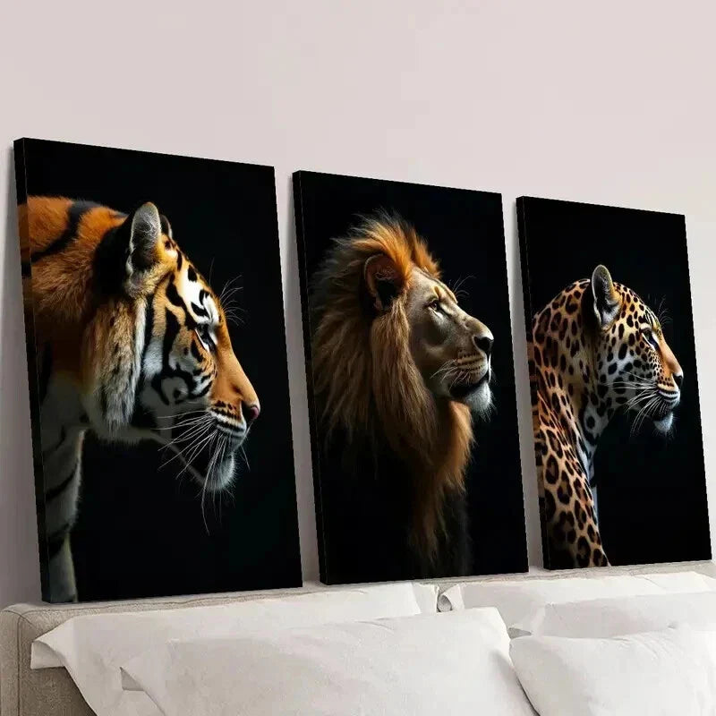 3pcs Tiger Lion & Leopard Animal Portraits Wall Art Set Canvas Framed 40x60cm - High Quality Print 100% Australian Made Wall Canvas Ready to Hang