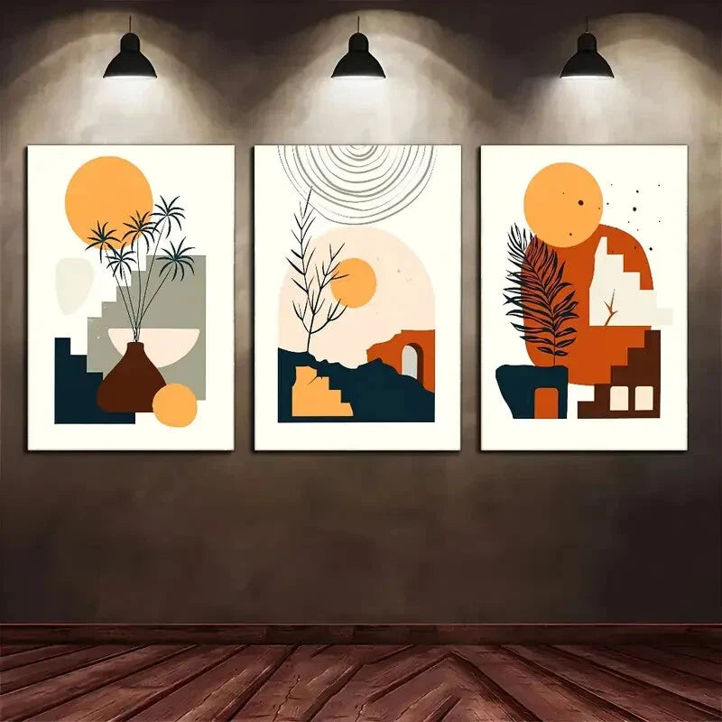 3pcs Touch of Sophistication Abstract Geometric Metal Print Ready to Hang Art