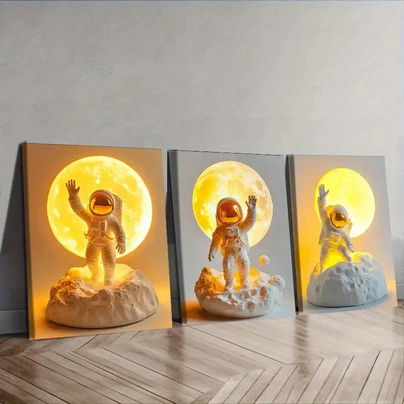 3pcs Toy Astronauts on the Moon Wall Art Set Canvas Framed 40x60cm - High Quality Print 100% Australian Made Wall Canvas Ready to Hang