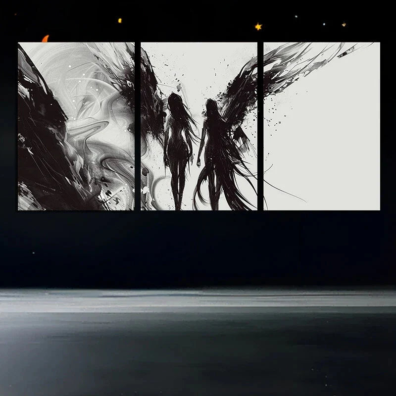 3pcs Traditional And Modern Black & White Wings Metal Print Ready to Hang Art