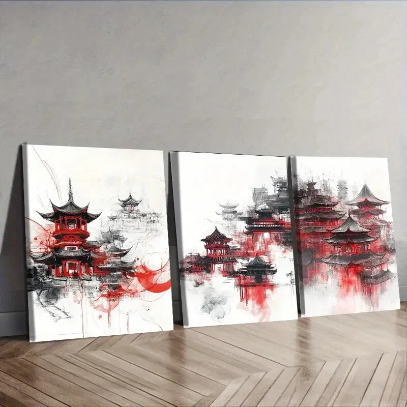 3pcs Traditional Chinese Architecture Wall Art Set Canvas Framed 40x60cm - High Quality Print 100% Australian Made Wall Canvas Ready to Hang