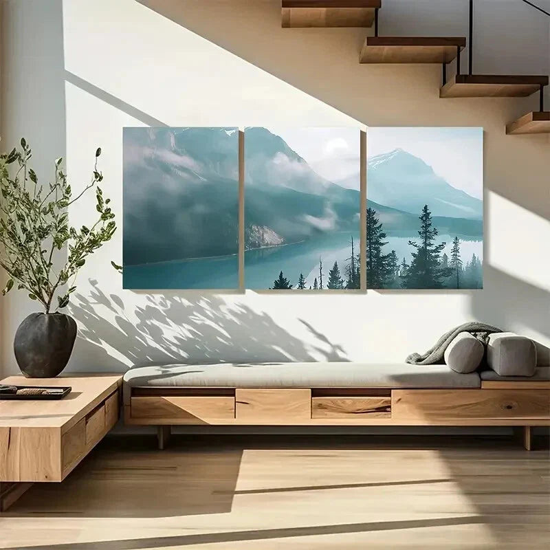 3pcs Tranquil Mountain Misty Lake Landscape Metal Print Ready to Hang Art