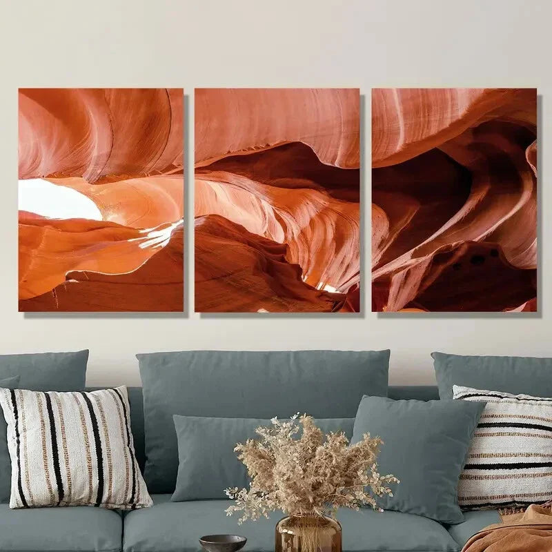 3pcs Transparent Danxia Style Cave Metal Print Ready to Hang Art