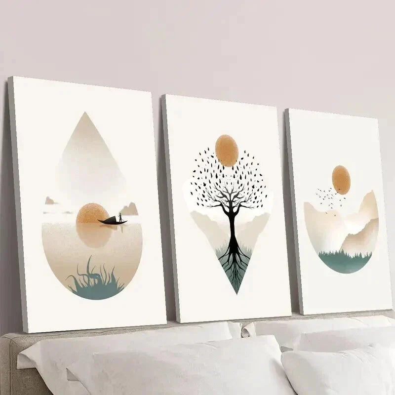 3pcs Tree of Life Lake Boat and Sunrise Wall Art Set Canvas Framed 40x60cm - High Quality Print 100% Australian Made Wall Canvas Ready to Hang