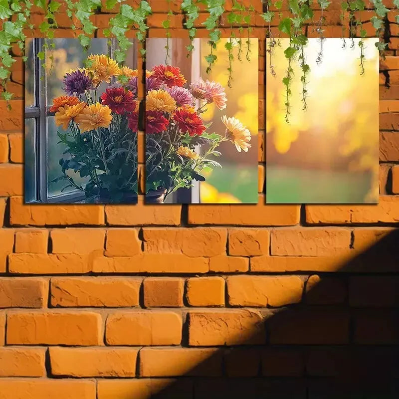 3pcs triple mural painting set Flowers Canvas Framed 40x60cm - High Quality Print 100% Australian Made Wall Canvas Ready to Hang