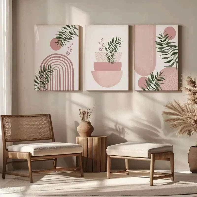 3pcs Triple plant medieval Boho Metal Print Ready to Hang Art