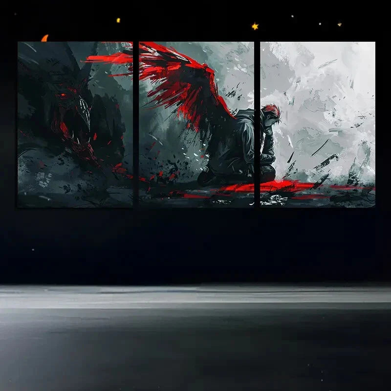 3pcs Triptych Abstract Red and Black Metal Print Ready to Hang Art