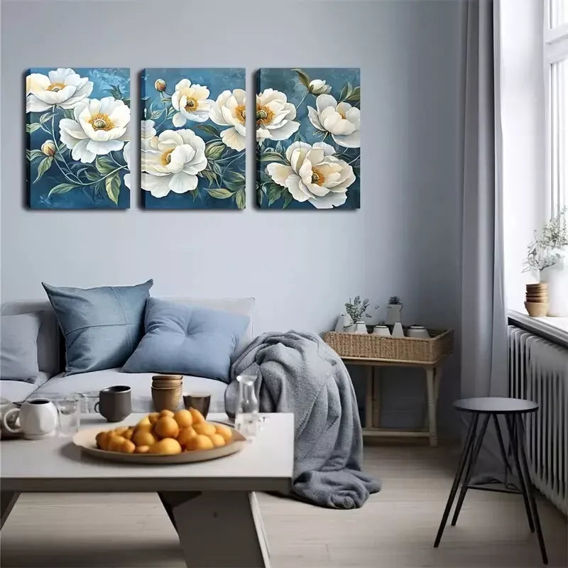 3pcs Triptych White Flowers Canvas Framed 40x60cm - High Quality Print 100% Australian Made Wall Canvas Ready to Hang