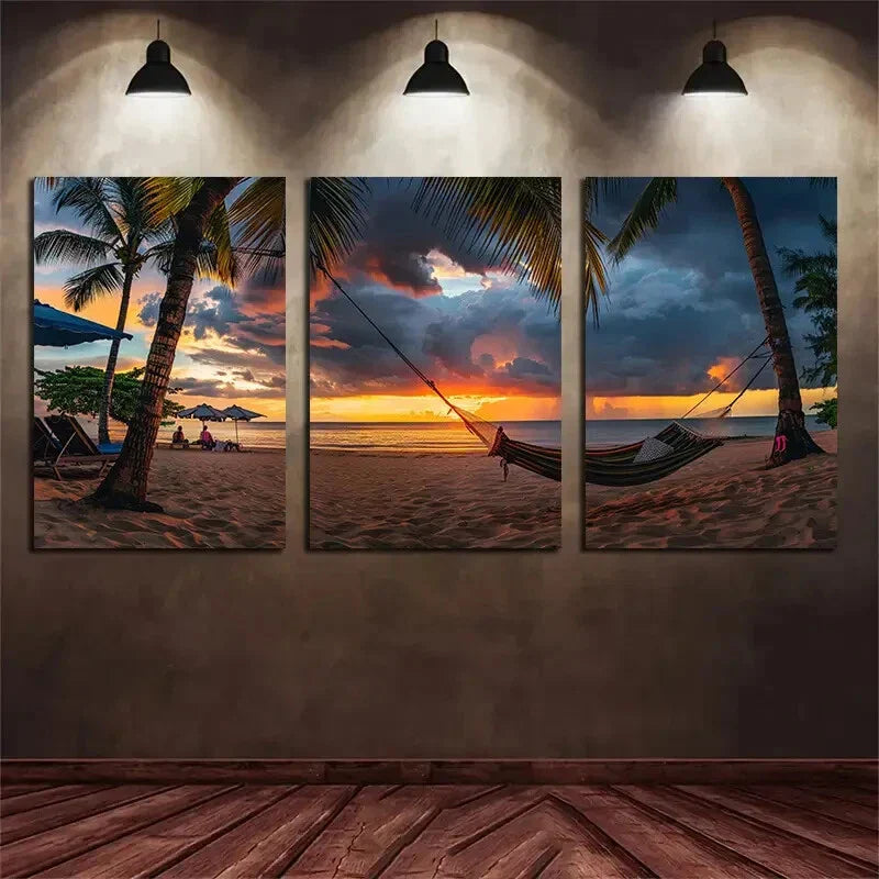 3pcs Tropical Beach & Palm Trees Sunset Metal Print Ready to Hang Art