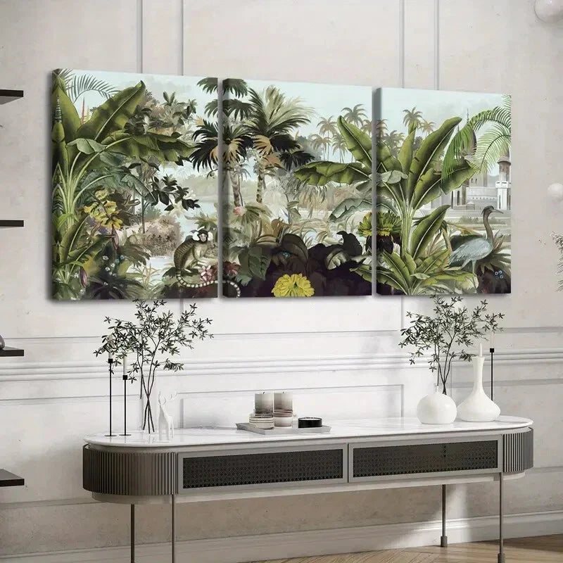 3pcs Tropical Forest & Wildlife Vibrant Flowers Wall Art Set Canvas Framed 40x60cm - High Quality Print 100% Australian Made Wall Canvas Ready to Hang
