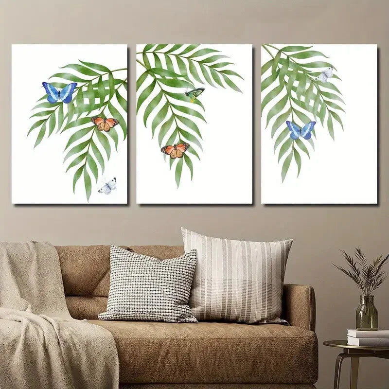 3pcs Tropical Palm And Colorful Butterfly Metal Print Ready to Hang Art