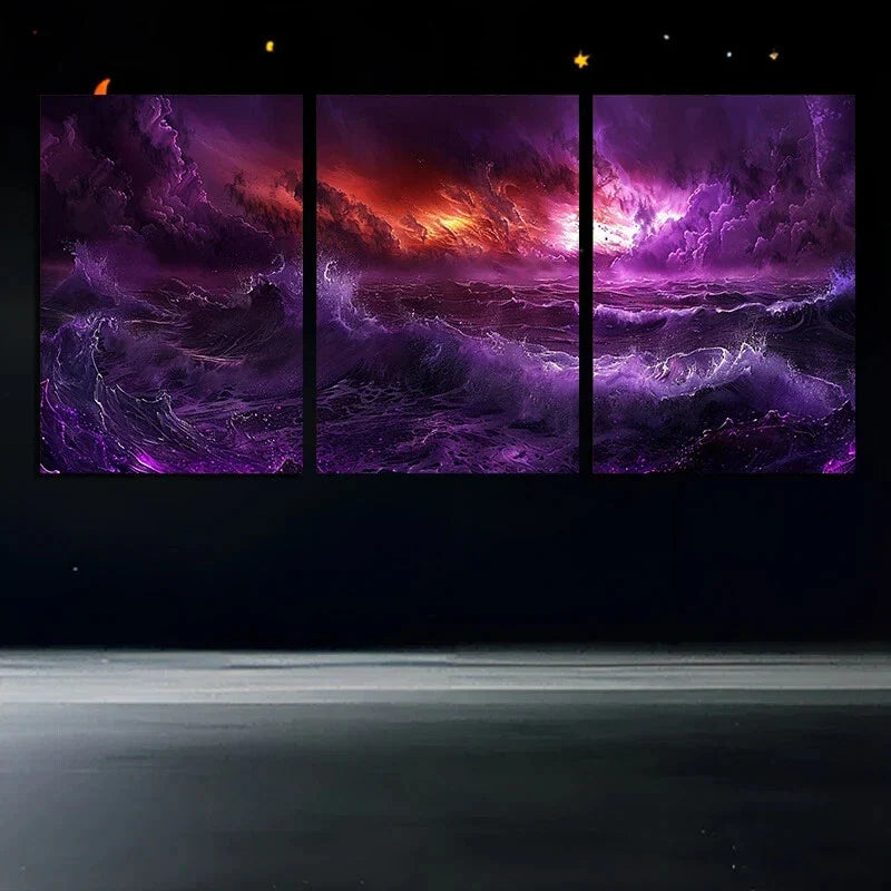 3pcs Turbulent Sea Storm Design Metal Print Ready to Hang Art