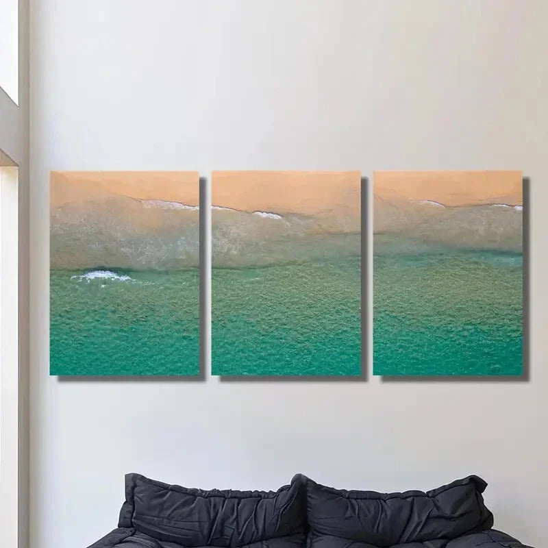 3pcs Turquoise Coastal Landscape Metal Print Ready to Hang Art