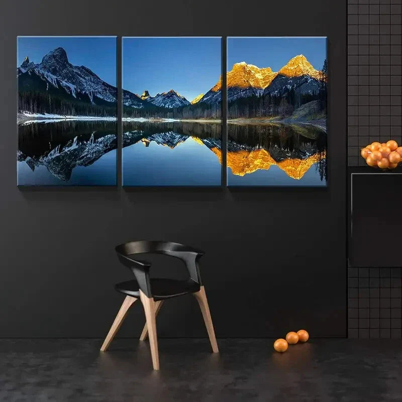 3pcs Turquoise Lake and Mountain Picture Metal Print Ready to Hang Art