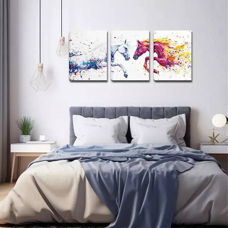 3pcs Two Psychedelic Horses Wall Art Set Canvas Framed 40x60cm - High Quality Print 100% Australian Made Wall Canvas Ready to Hang