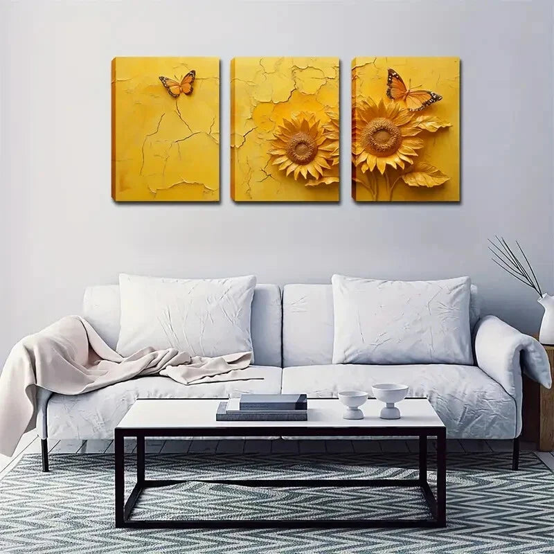 3pcs Two Yellow Sunflowers Modern Style Wall Art Set Canvas Framed 40x60cm - High Quality Print 100% Australian Made Wall Canvas Ready to Hang