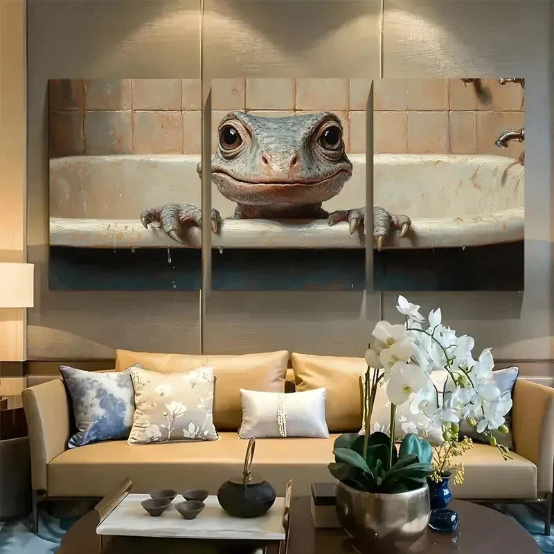 3pcs Tyrannisaurus Rex In A Bathtub Metal Print Ready to Hang Art