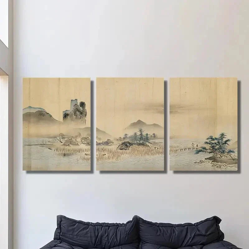 3pcs Ukiyo-e vintage Japanese landscape Metal Print Ready to Hang Art